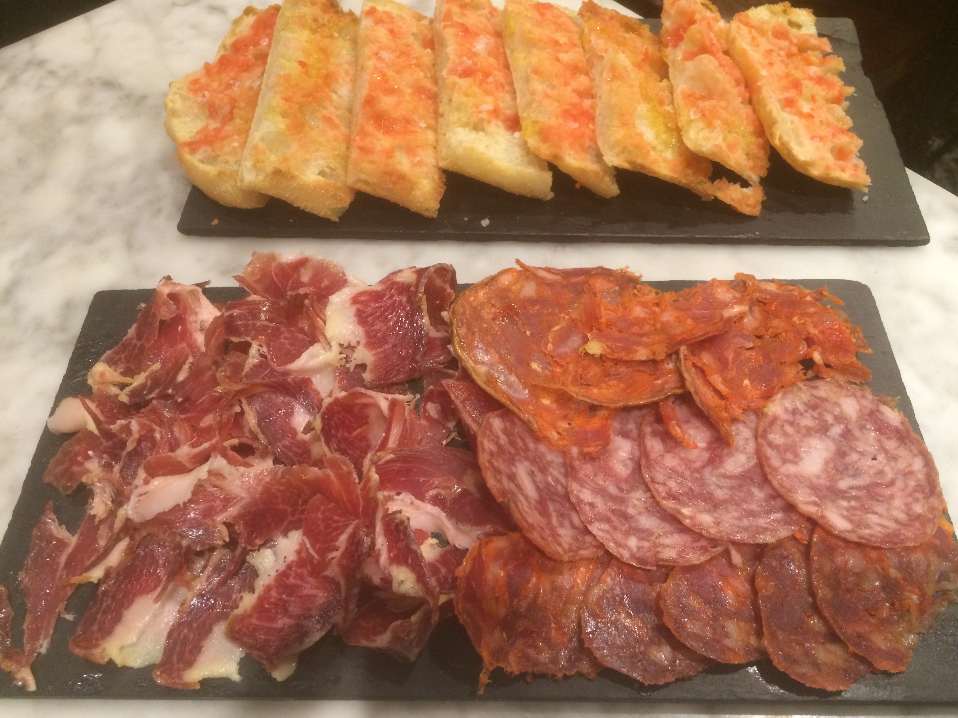 It’s always the small things that seem to be the most satisfying and a good glass of dry sherry with well marinated olives pleased me. The bread, which had a good crust with a light and airy centre captured the tomatoes it had been rubbed with and the oil drizzled on it, but had been toasted enough to stop it being soggy. The wine, a house Rioja, was equally good. In between talking about the highlights of the day we managed to decide what to order from the extensive menu.