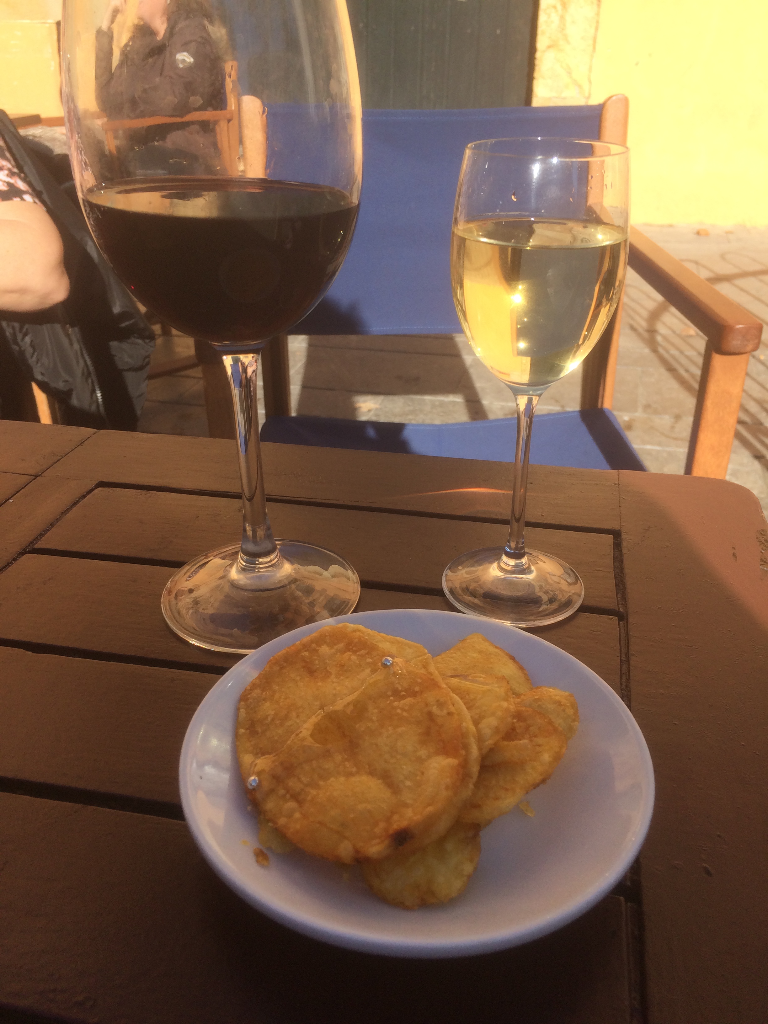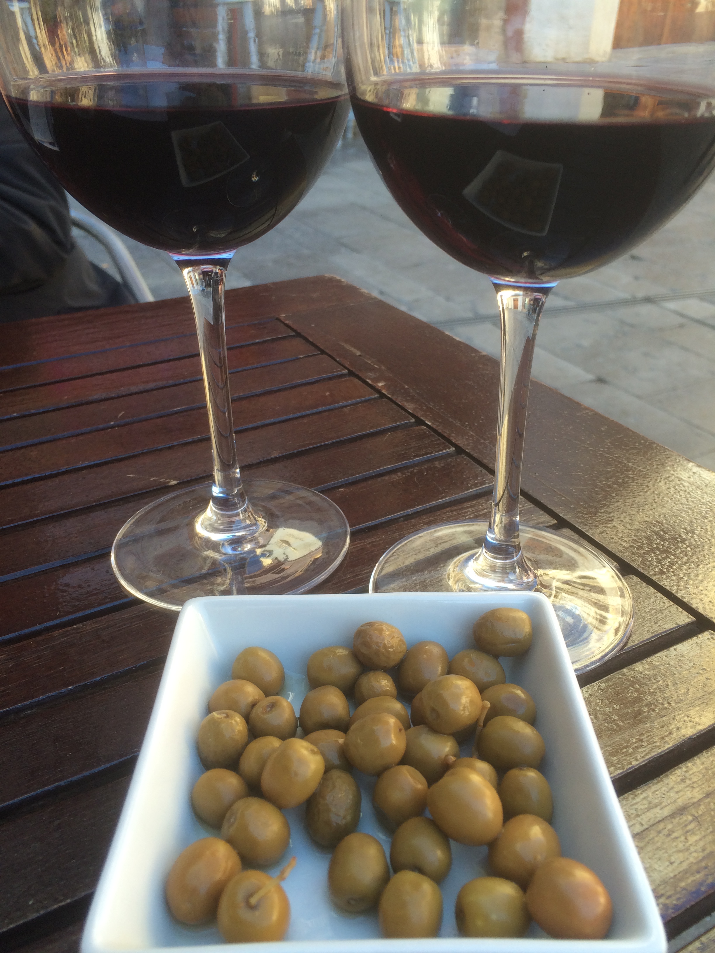 However, Plaça del Rei below beckoned and we spent a pleasant hour on both sides of the square drinking Rioja in the shade and sherry (La Ina) in the sun whilst nibbling on aceitunas and patatas.