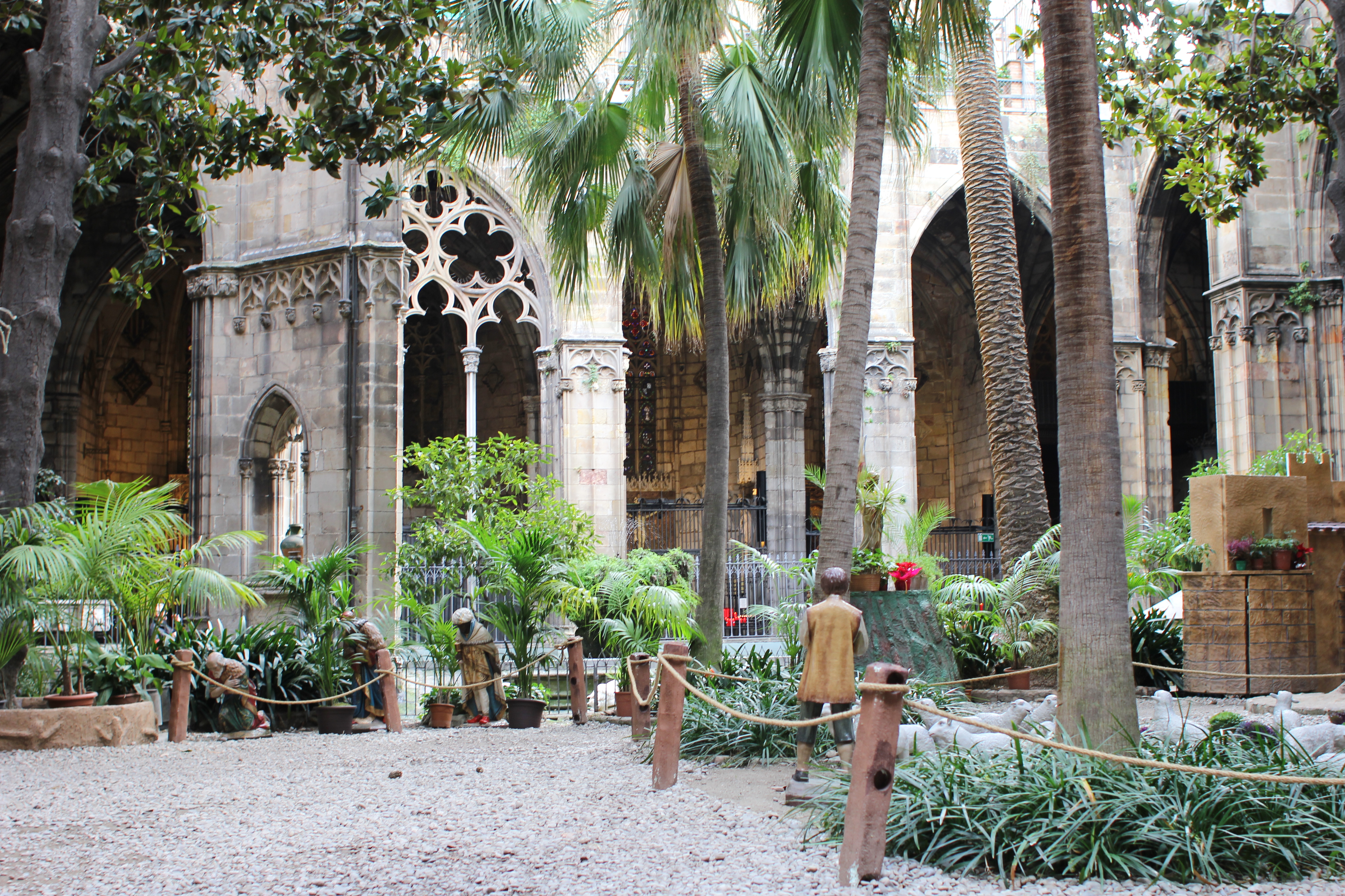 The simple nativity scene is displayed once again in the garden and the gaggle of 13 white geese wander around the pond. Each goose represents one year in the life of the martyr Santa Eulalia, the young virgin tortured to death in 303 AD by the Romans for her Christianity.