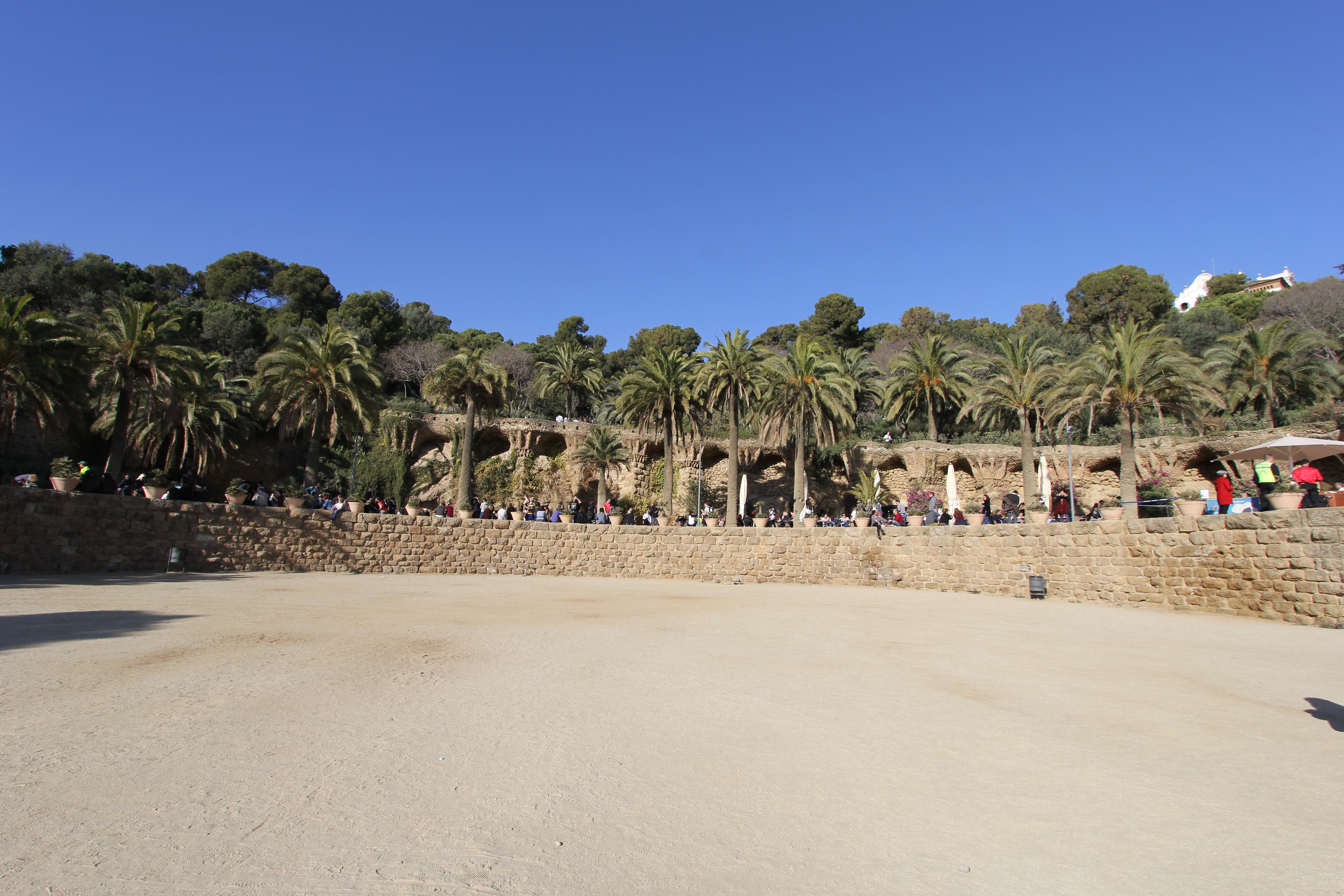 The Greek Theatre, part of which is above the hypostyle room, was more recently renamed Plaça de la Natura (Nature Square). It was designed to stage large open-air shows that could be watched from the surrounding terraces. Even during Güell’s lifetime, the park was considered to be one of Barcelona’s great tourist attractions, and the square was often used for staging Catalanist events, traditional Catalan sardana dancing and other civic and social events.