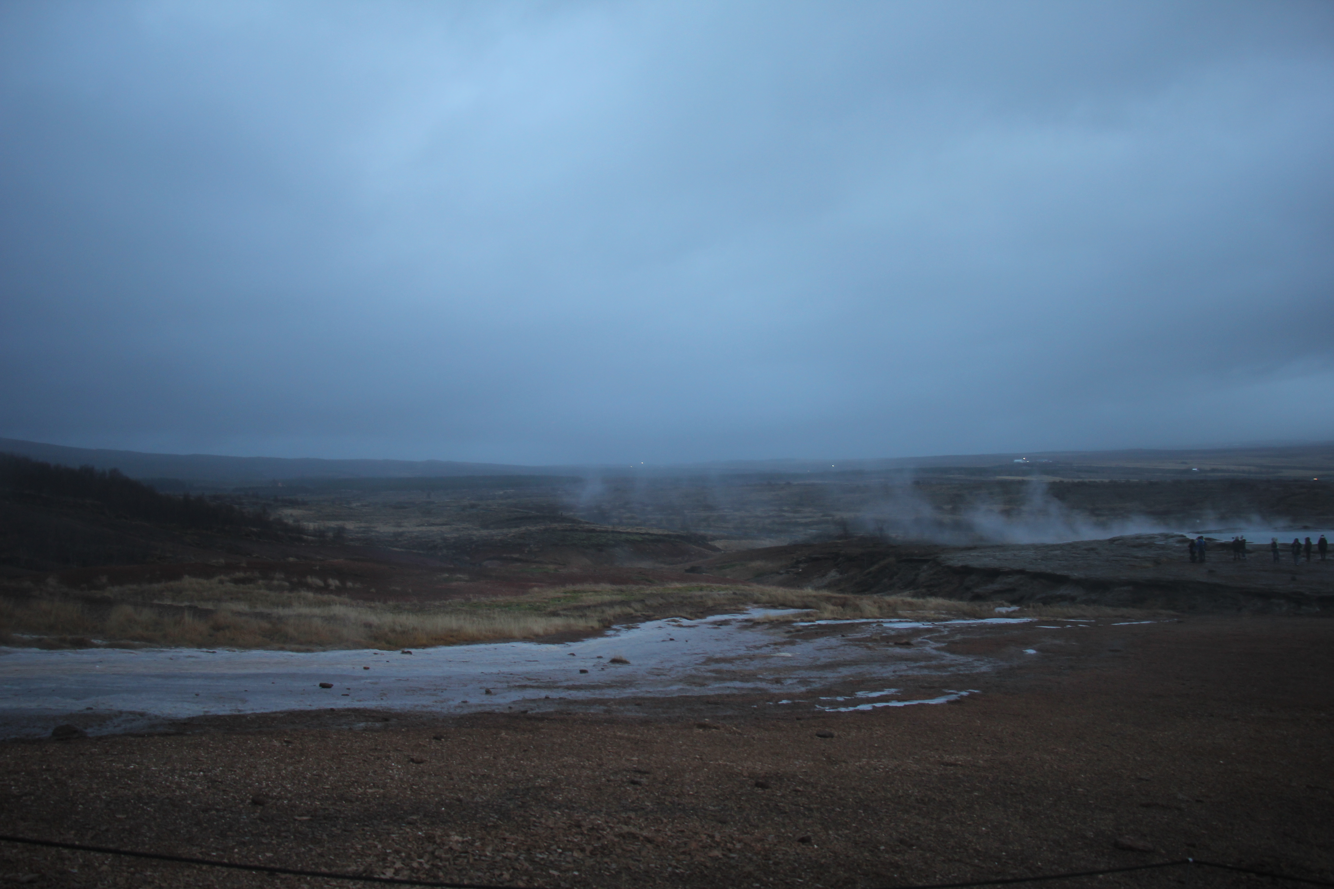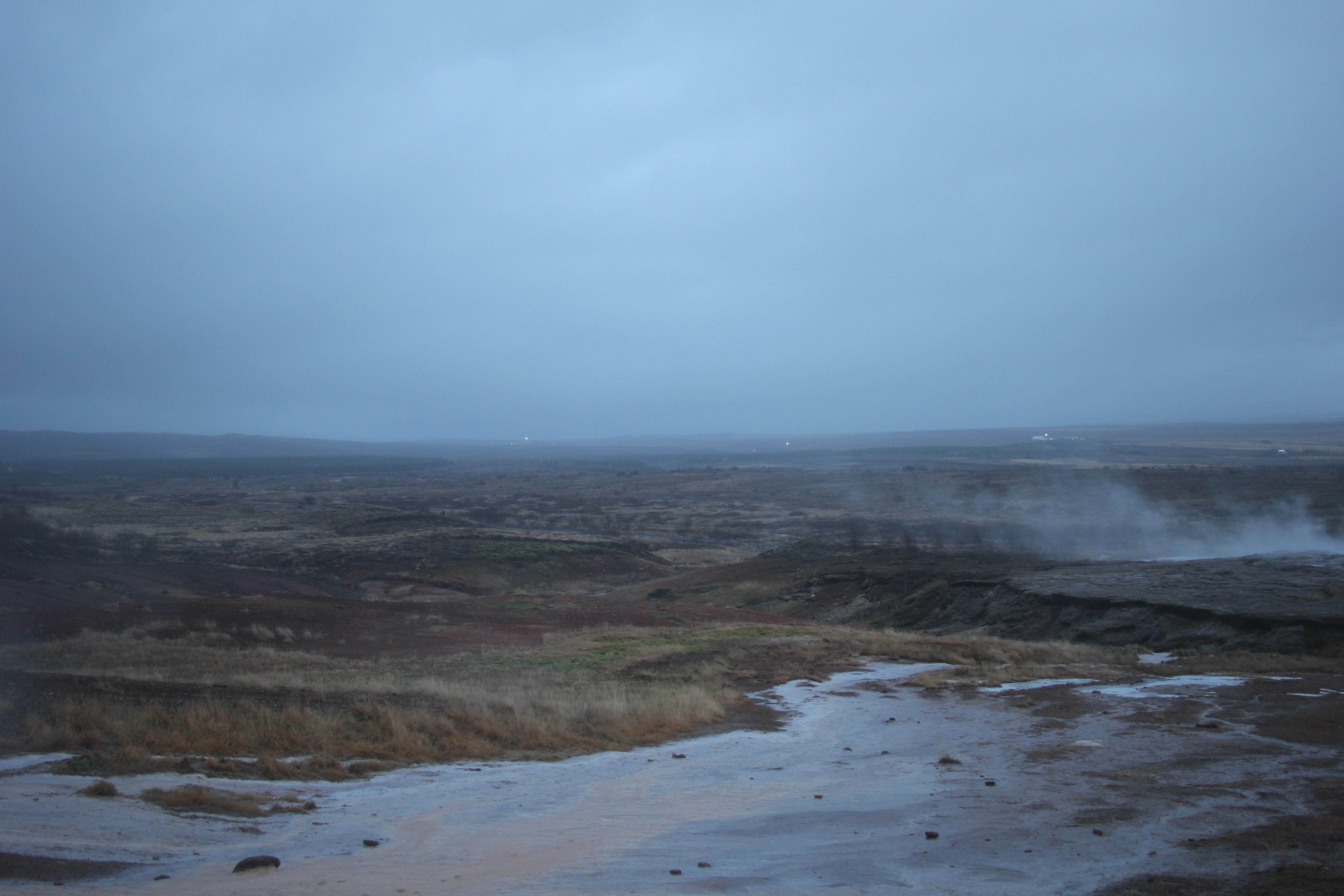 We had an early start for our Golden Circle tour which took us to the three most popular natural attractions in Iceland: the Geysir Geothermal Area; Gullfoss Waterfall; and Þingvellir National Park. Our journey takes us along Ring Road 1 and then just outside Selfoss we take Biskupstungnabraut, the first section of Route 35 which leads to Geysir. In the early morning twilight the Harpa concert hall’s lights were a cool arctic blue!