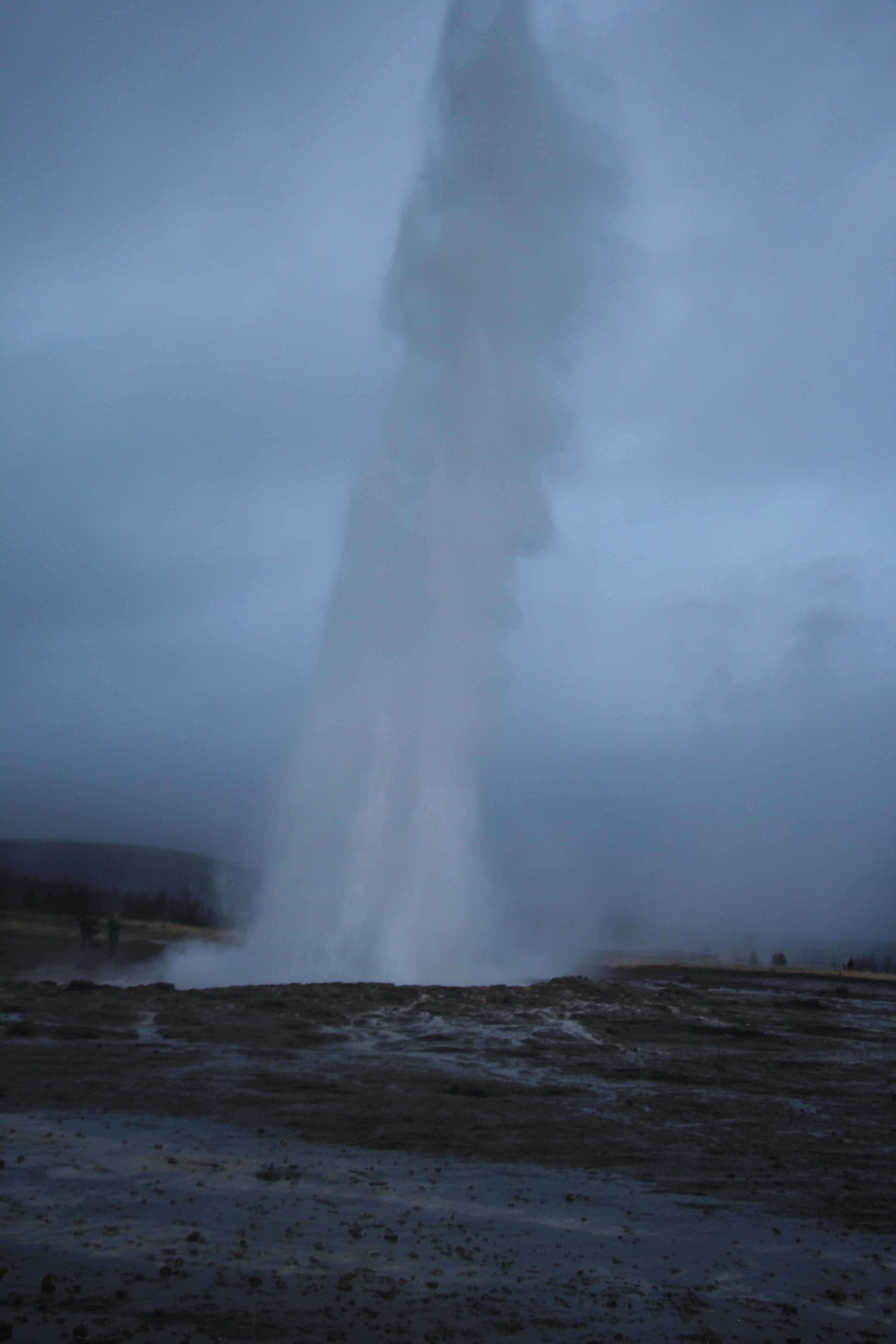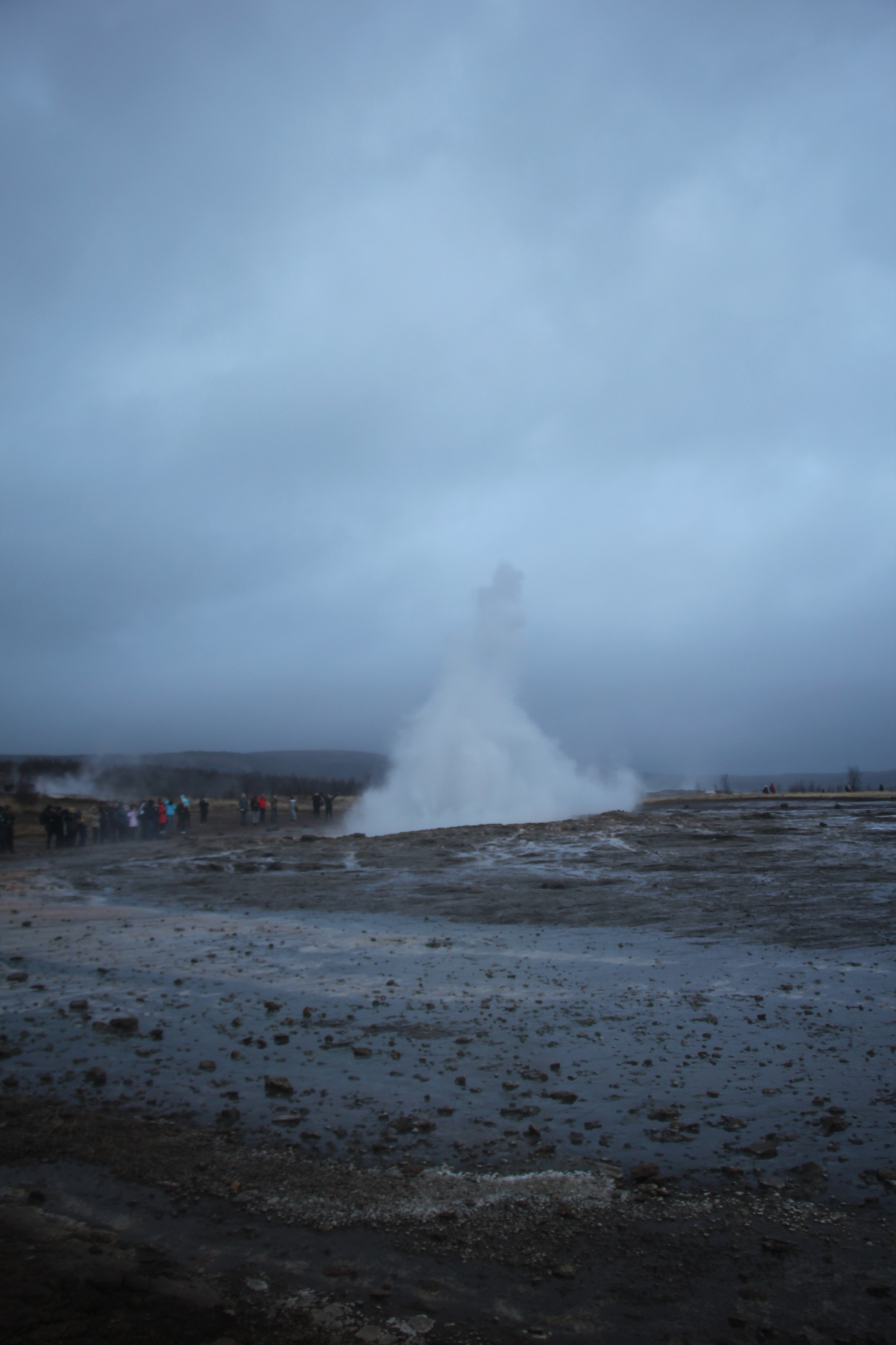 Located in the Haukadalur valley, the famous geyser – from which all others take their name – is currently in an inactive phase. During its active period water would gush up to 70 metres into the air. A few metres away Strokkur geyser, which is currently active, sends a column of boiling water 15 to 20 metres into the air every 10 to 15 minutes. We managed to catch one of Strokkur’s less impressive erruptions. Perhaps it was the cold, but the time between activity certainly seemed longer than 15 minutes!