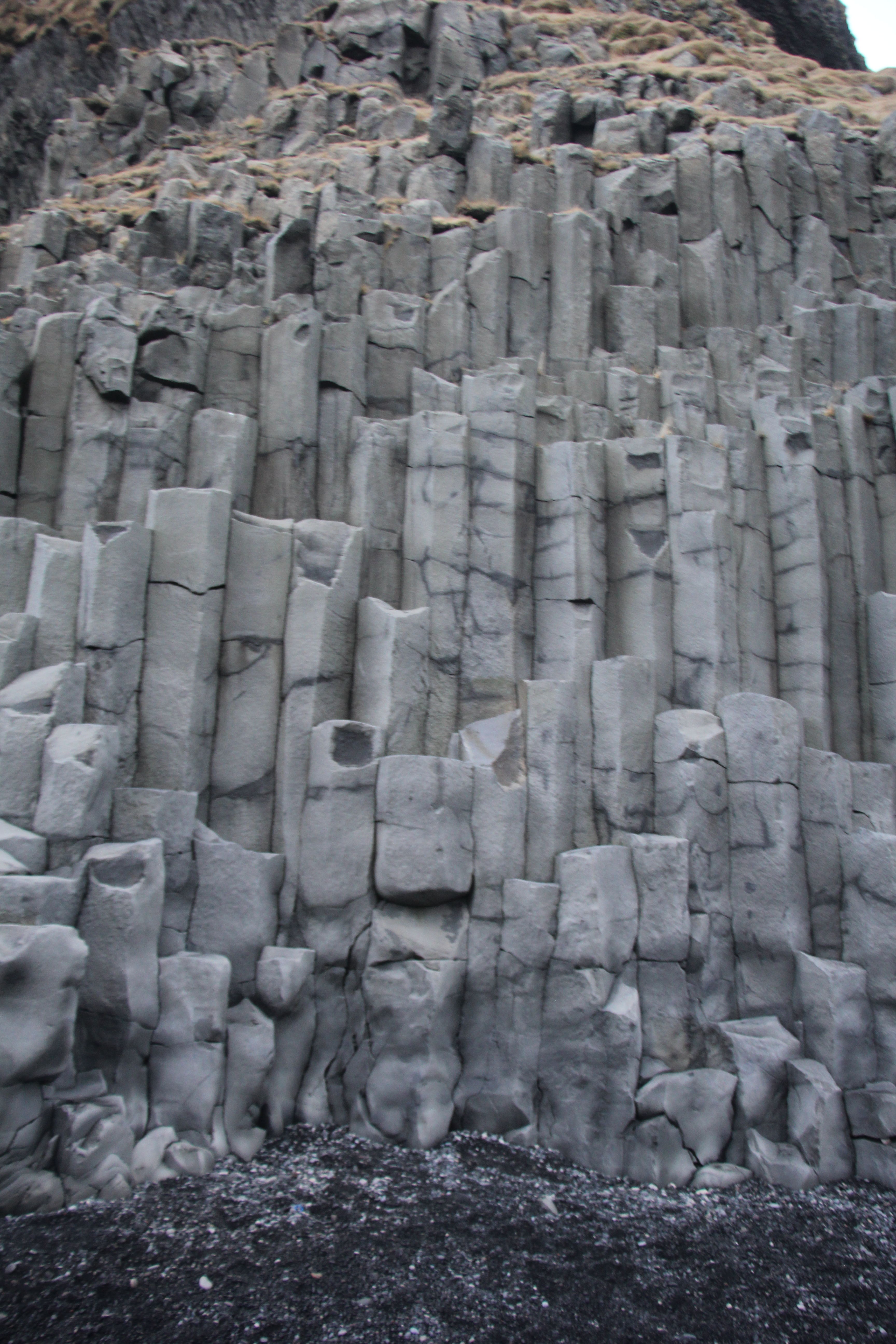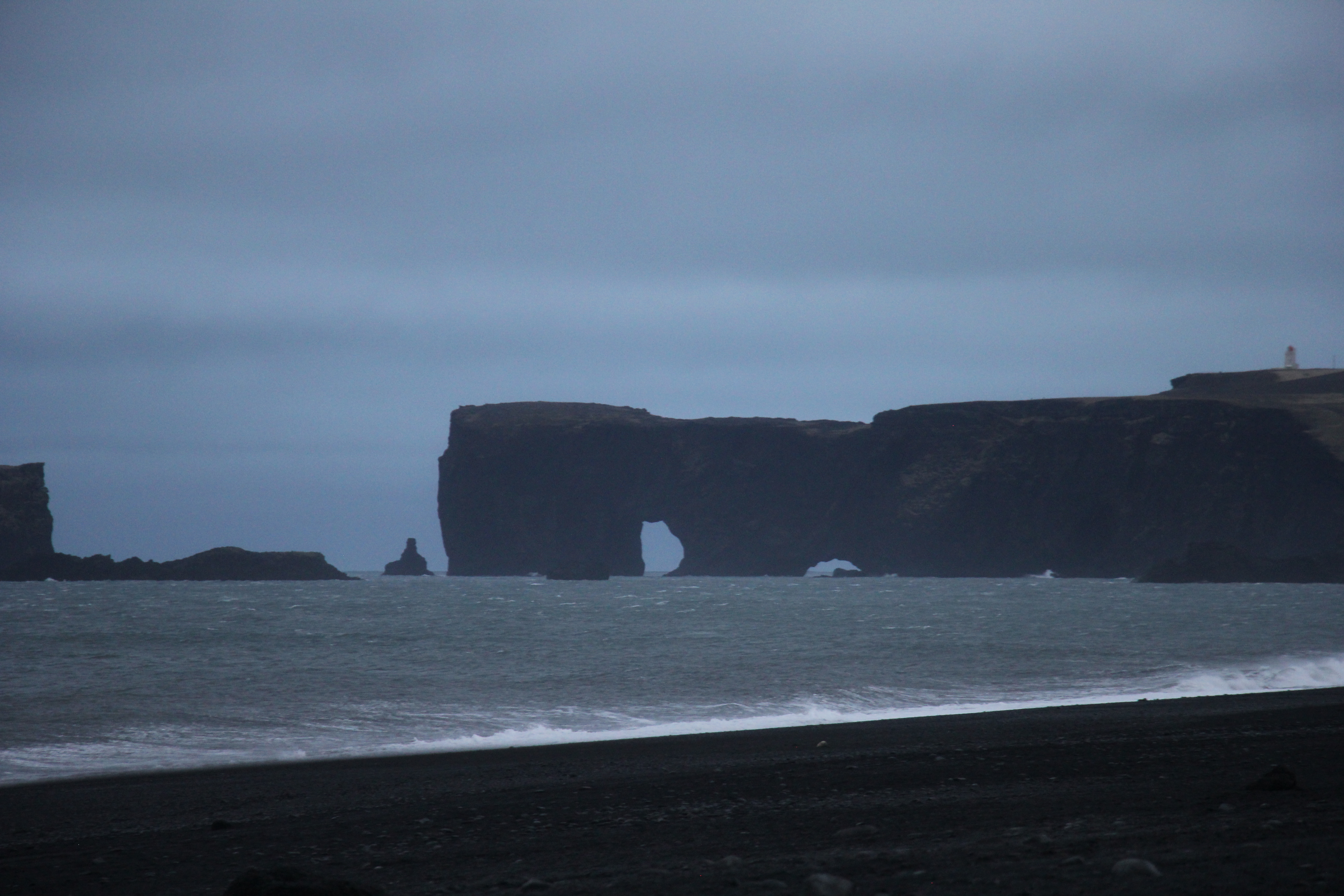 The beach is impressive, with the black sand, basalt columns and caves. Perhaps not as dangerous as the sneaker waves, but the sand can be biting when whipped up by the strong winds. Walking against the wind when were there difficult and although we didn’t have to take shelter in the cave, we did walk with our back to the wind.