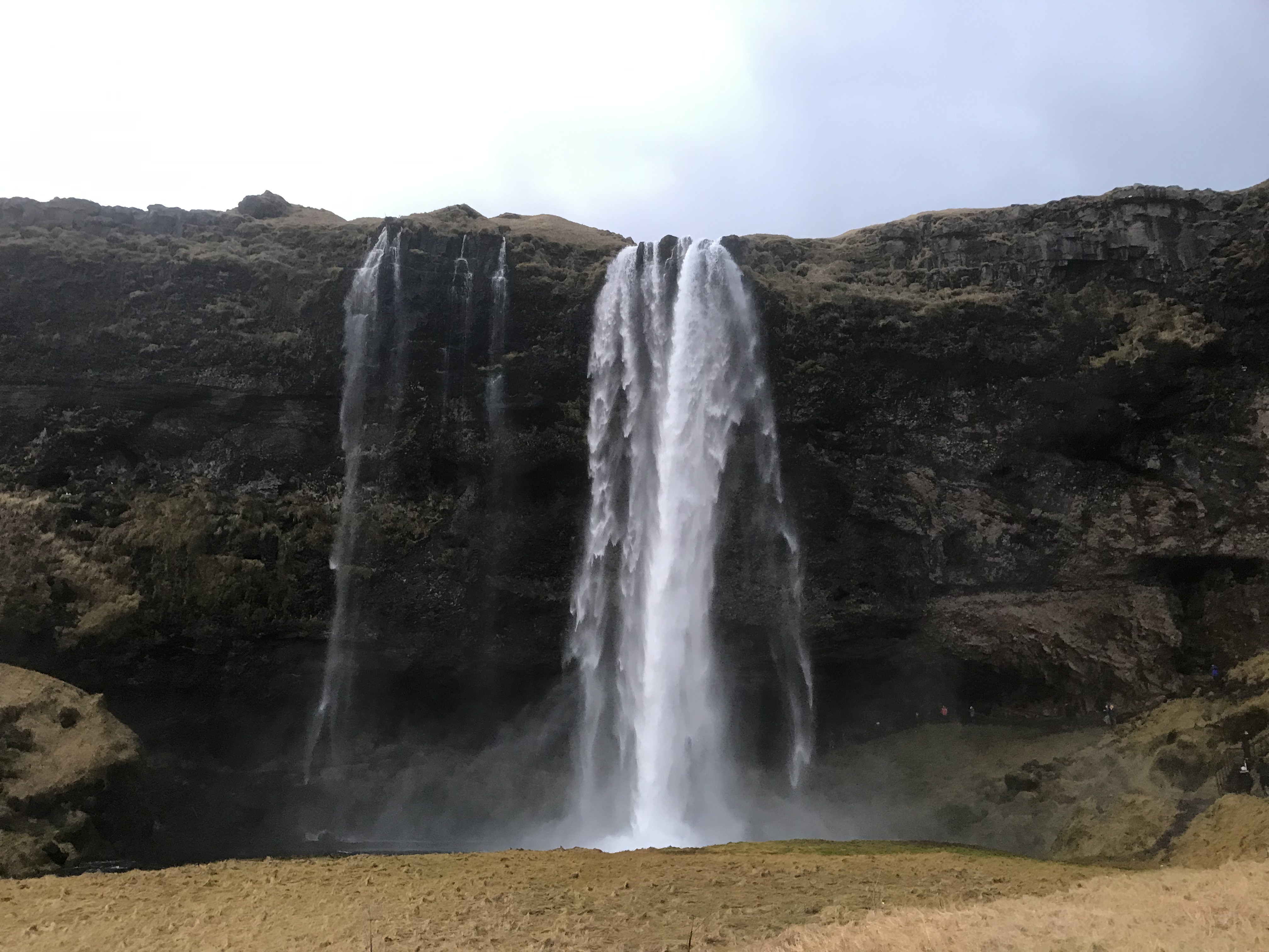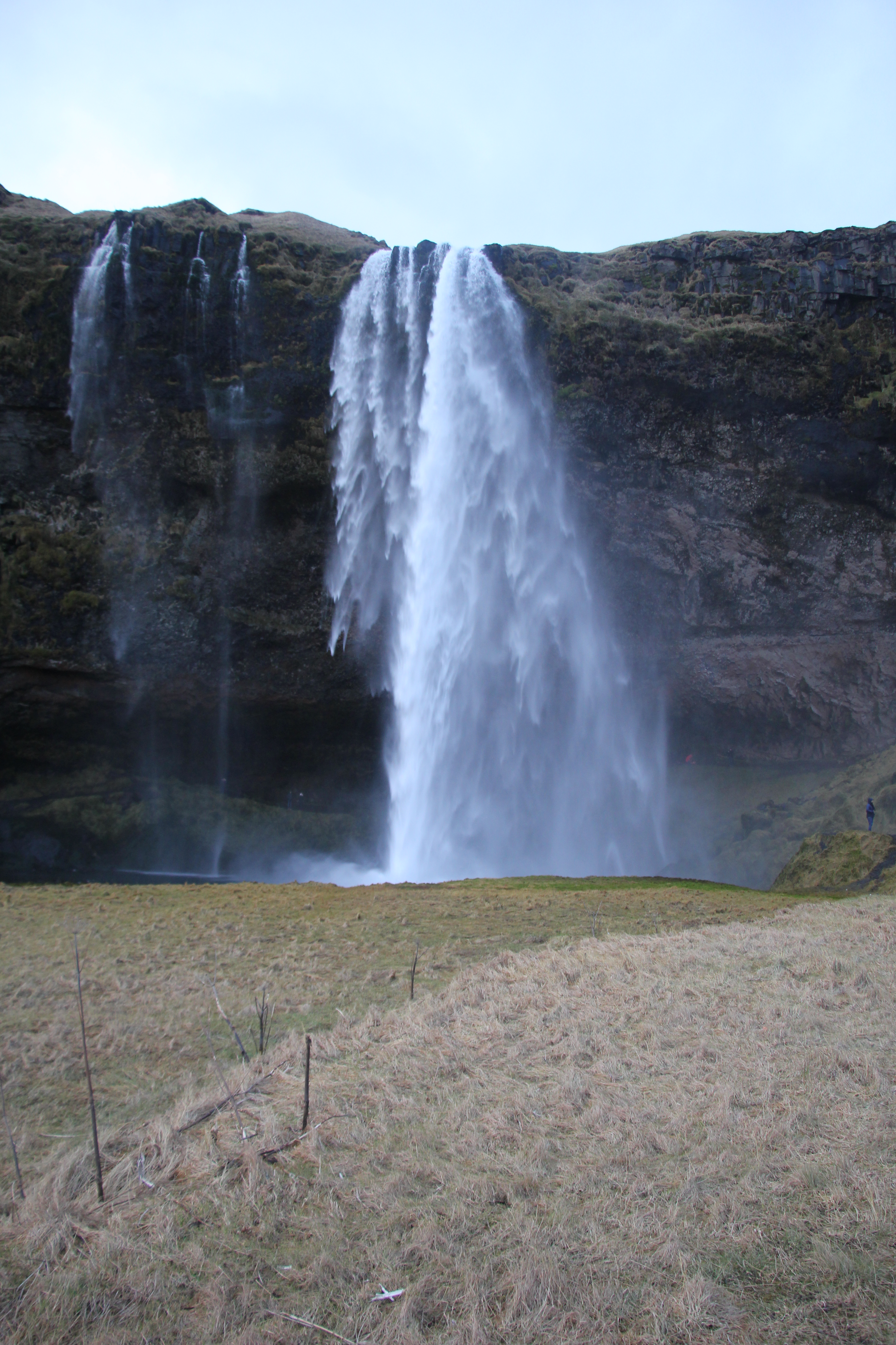 Our final stop of the day was the waterfall Seljalandsfoss at Seljaland. The waterfall has an impressive 60m drop and is fed by the Seljalandsá, river which flows from the volcano glacier Eyjafjallajökull. One of the attractions of Seljalandfoss is that you can actually climb up the cliff face and walk in a wide cavern behind the waterfall. After the short climb standing behind a cascading curtain of water is breath taking, and more than refreshing when the wind blows the water back into the cave.