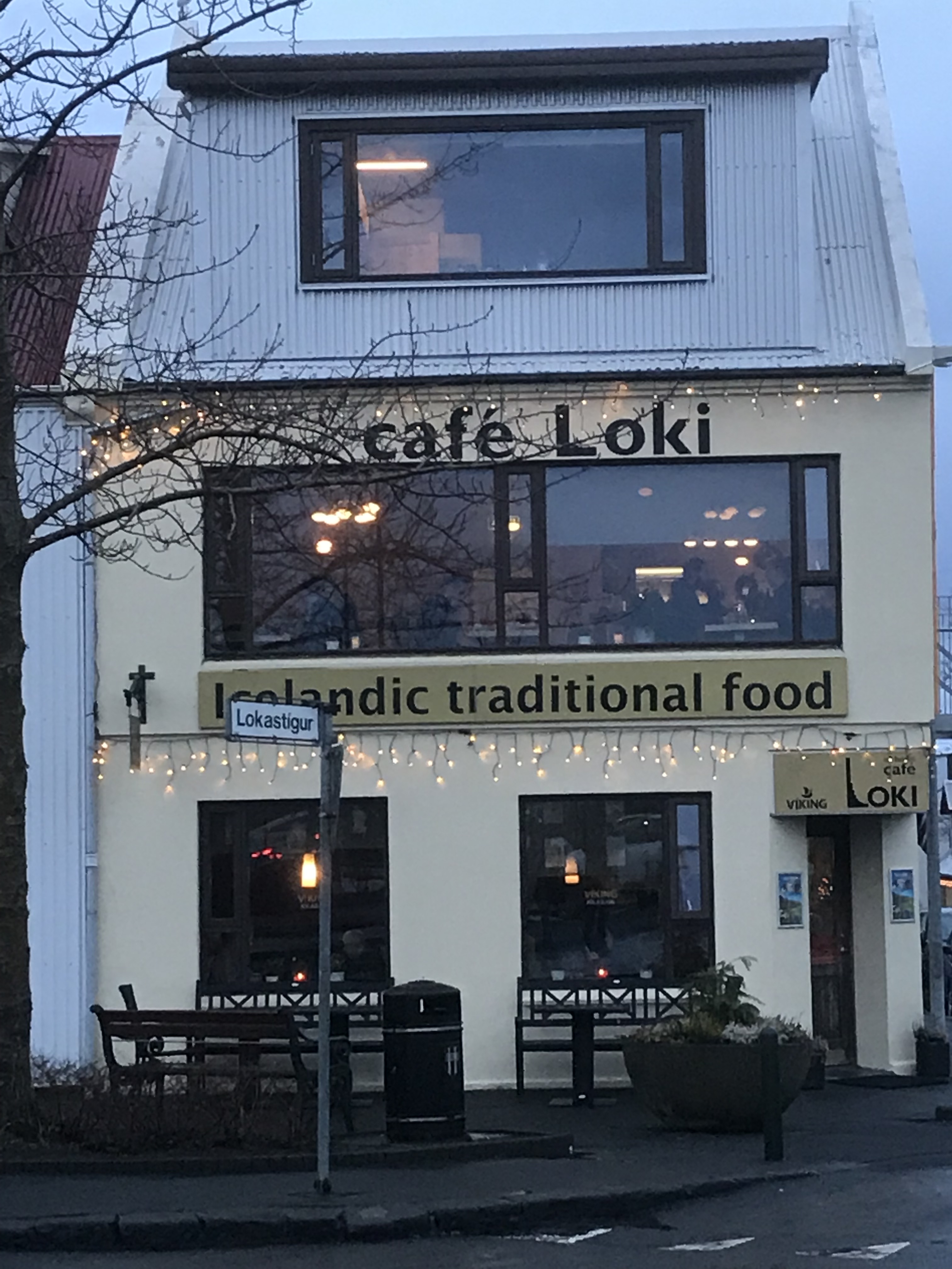 Feeling spiritually refreshed we stride forward in the wind like Erikson, but in search of food rather than the new world! Our journey is a short one across the church precinct to the Cafe Loki on the other side of the road.